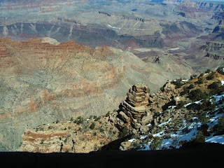 We went to Arizona as kind of a mini reunion with some of Mike's relatives. We went to Lee's Ferry where his Great Great? Grandma and her husband ran the ferry crossing. They also ran the Lonely Dell Ranch, they were out in the middle of nowhere and it was the only place to cross the river. It was quite interesting, we got to look in the cabins where they lived and even see some of the remains of the steam engine of the ferry! We went on lots of different hiking trails which the kids loved. My card on my camera was full but Mike told Joel that he could walk up the mountain a little bit he was topping the next little ridge when Mike noticed and went to go after him at which point Joel was on a dead run- Mike was yelling at him to stop to which Joel replied "I can't hear you your too far away" it was quite a sight to was mike trying to climb up this mountain (mostly on his hands and knees)! Joel finally did stop and Mike caught up to him!